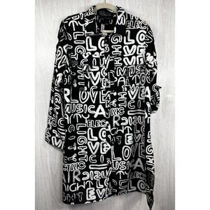 Ashley Stewart NWT Love Music Graffiti Shirt Dress 14 Black White Streetwear