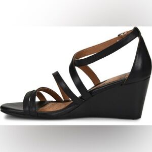 Sofft Mecina Leather Wedge Sandals in Black Sz. 7.5