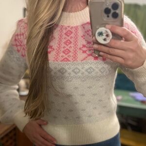 Stay cozy and stylish with this women's pink and cream sweater. Perfect for chilly days, it features a beautiful pattern that adds a touch of elegance to any outfit.
