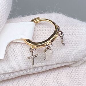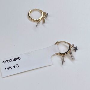 Carla Nancy B. 14k Gold Huggie Hoop earrings with star and cross charm