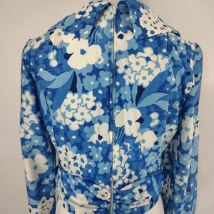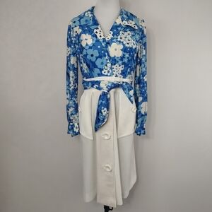 Blue and White Floral 70s Vintage Mini Dress Mod No Tag