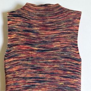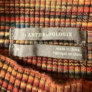 Keywords: Anthropologie, tunic, sleeveless, mock neck, multicolor, casual, fall fashion, women's clothing, stretchy fabric, ribbed texture, size M, viscose, polyester, pre-owned, hand wash,