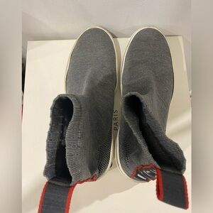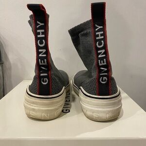 GIVENCHY ITALY MEN GEORGE v SOCK SHOES gray/white size 42. Pre-owned. Gray knit top & white rubber outsole. No holes or rips. Slip on high tops. Comes with original box and dust bag. Just needs a good tlc