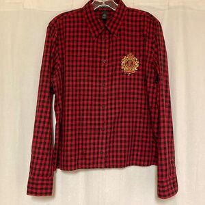 Lauren Ralph Lauren Red Black Checkered Button Down Large Crest Logo Size Large
