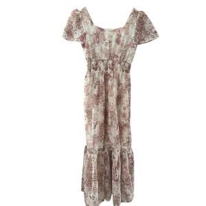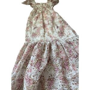 Solitaire Floral Eyelet Puffed Sleeve Maxi Dress Pink Size Small