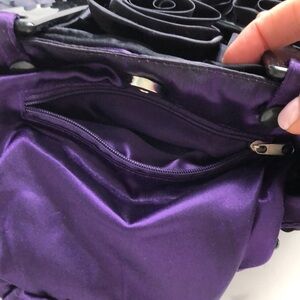 For Your Ease Only Black Satin Rosettes Evening Purse Handbag