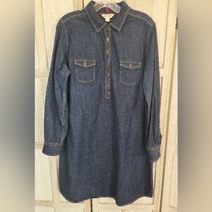 Brooks Brothers Womens Red Fleece Denim Shirt Dress Size 12 100% Cotton
