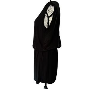 This lovely J. Crew black dress is in excellent used condition and comes from a smoke-free home. The dress features a unique design with a silky-like material on the back and lined sleeves, while the front and skirt are made of a soft, t-shirt-like material. It's a comfortable and stylish choice for various occasions!