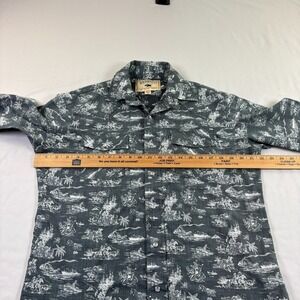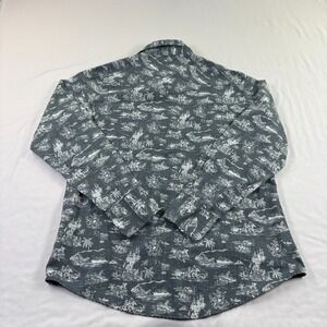 Western Aloha Shirt Mens Medium Gray Pearl Snap Up Cowboy Long Sleeve Island