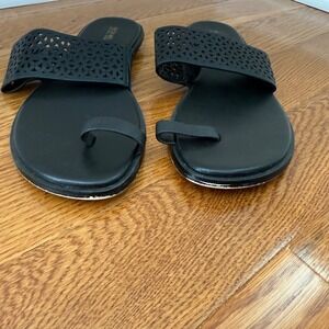 MICHAEL Michael Kors Black Leather Toe Ring Cutout Sandals Slides Size 9M