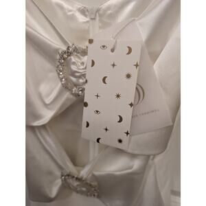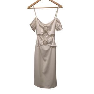 Gigi's June Satin Midi Dress White Cutout Swarovski Stone Bridal Wedding Bride
