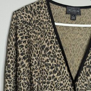 St. John Boutiques Women’s Medium Leopard Knit Metallic Cardigan Sweater Luxury