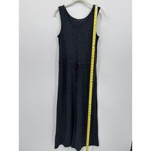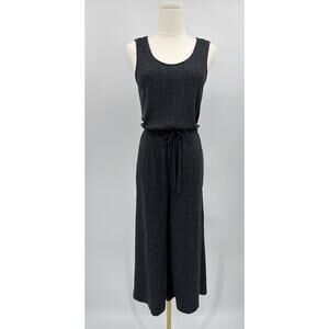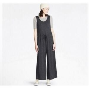 Soft ribbed knit jumpsuit from Uniqlo in a versatile heather gray. Features a sleeveless scoop-neck silhouette with a flattering drawstring waist and relaxed wide-leg fit. Easy to layer year-round for casual, minimalist looks.