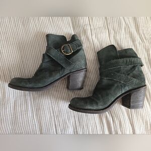 Fiorentini Baker Gray Green Suede Ankle Boots Strappy Womens EUR 38 US 8 Italian