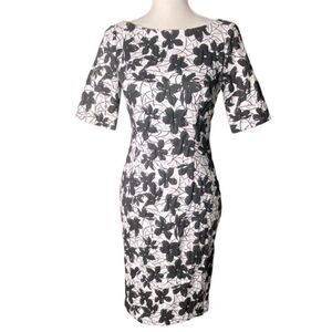 CALVIN KLEIN Wm’s Sz 6 Black White Floral Jacquard Stretch Retro Sheath Dress