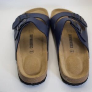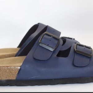 Cushionaire Cork Slip On Leather Blue Double Buckle Sandals - 8