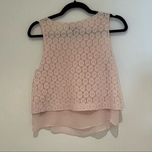 Features: Beautiful tank with lace overlay. Rounded neckline with plenty of coverage. Could be dressed up for the office or down for the weekend. Perfect for spring!