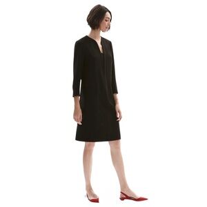 A cool take on the tuxedo jacket, this effortless shift dress is a proven head-turner. Besom pockets and strategically placed darts add definition through the torso, while a deep slit in the front highlights a built-in inset beneath the collarbone. Made from a breathable, machine-washable twill fabric, this dress can take you anywhere: Wear it with pumps for a client meeting, then add jewelry and heels for a cocktail event. 21” PTP.
