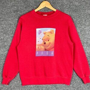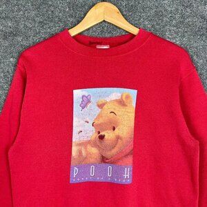 VINTAGE 90's Disney Pooh Bear Red Crewneck Women's Sweatshirt Size S