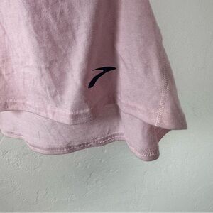 Brooks womens size US XXL DSG distance 2.0 style tank top knit shirt tee in orchid light pink with white and multicolor details. Scoop neckline. Sleeveless. Graphic big logo spellout on front move print. Hi lo hemline. Racerback style. Empower her collection. Perfect motivational top. Textured jersey knit fabric in cotton blend with stretch. Perfect for athletic workouts like yoga, running, training, or casual use. New with the tags, no flaws.
