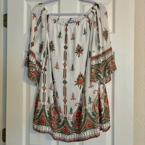 Lapogee Tunic Top Women’s XL Boho India Peasant White Orange Paisley Floral