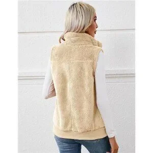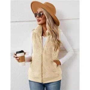 New Womens Fuzzy Fleece Vest, Casual Warm Sleeveless Zip Up Sherpa Vest