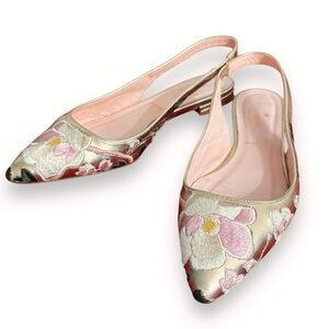 KATE SPADE Barnie Gold Leather Floral Embroidered Slingback Flats