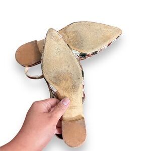 Shows wear on leather sole, has areas where paints has won off in heel.