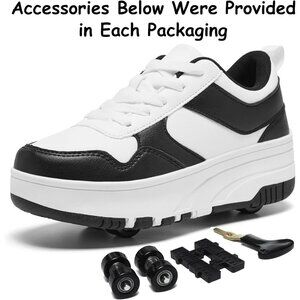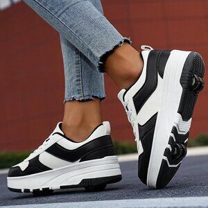 Kids Black-white Detachable Wheeled Fashion Sneakers Roller Skate Shoes