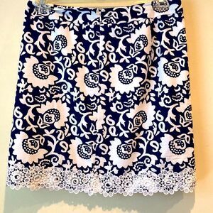Ann Taylor blue and white skirt with lace women’s size 8 petite