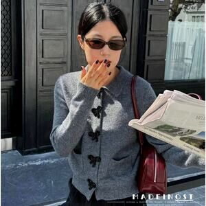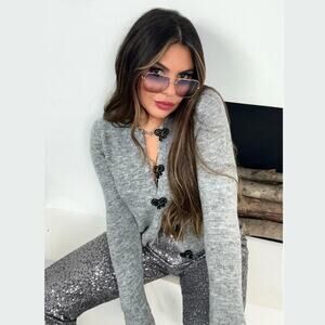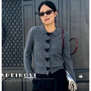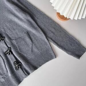 RARE!!! Gray knit top with lapel collar and long sleeves. Front patch pockets. Rib trim. Front closure with bow-shaped snap buttons. From ZARA, in size L. New with tags. Sold out in stores.