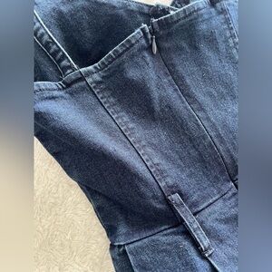 Vintage blue denim maxi dress featuring gold buttons. There’s no tag on this dress but it fits like an XS. Back zip closure and front gold buttons can be left partially open or fully closed.