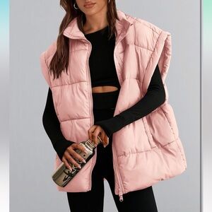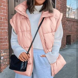 Stylish pink puffer zip up vest with collar and pockets. Cozy and Perfect for layering.