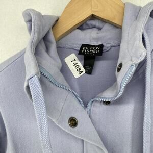 EILEEN FISHER Jacket PS Heavy Brushed Organic Cotton Hoodie Snap Front Blue VTG