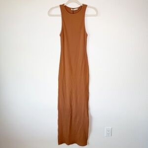 Brand new with tags. Alice + Olivia Camel Brown Ribbed Knit Tank Maxi Dress Side Slits. Slits on both sides. Size 4.