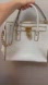 Exterior: The white leather is still crisp! There is a small mark on the front by the metal plate, and another mark on a handle attachment (see photos for details).