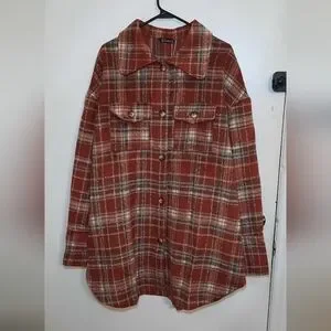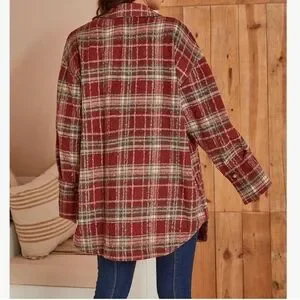 Women's Flannel Plaid Shacket Wool Blend Jacket Coat. Color Red Wine