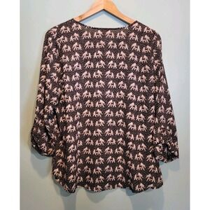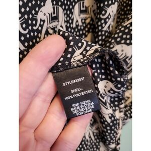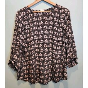 Black Tan Elephant Novelty Lightweight Roll Tab Sleeve Top Pixley Sz L