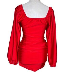 LA SEDUCTION Red Satin Ruched Mini Dress Puff Sleeve Keyhole