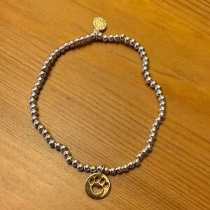 Little 'Pawfect' Bracelet features a captivating design that will dazzle with every movement. Featuring a stretch-bead style and a beautiful silver-plated charm. Plated brass.