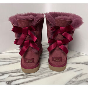 Ugg Bailey Bow Pink Slip On Suede Boots Size 5