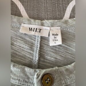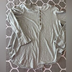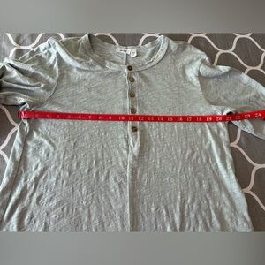 WILT Made in USA 100% Cotton Long Sleeve Shrunken Henley Frayed Hem Button Top