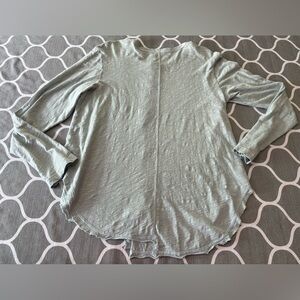 WILT Made in USA 100% Cotton Long Sleeve Shrunken Henley Frayed Hem Button Top inside large.