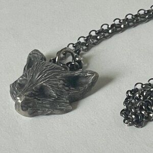 Necklace Sterling Silver Chain 18-inch Fox Oxidized Handcrafted Andree Chenier