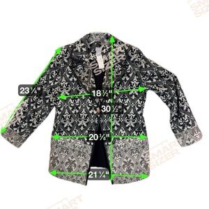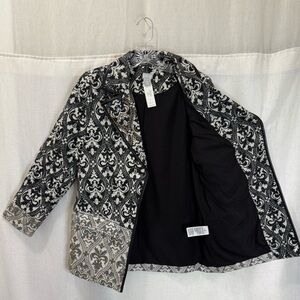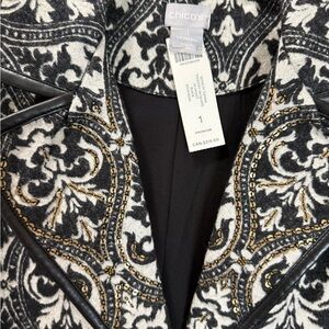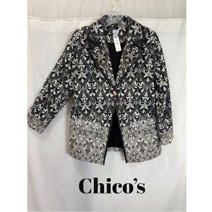 Chico’s NWT Jacquard Brocade Blazer Jacket Black White Gold Pattern Size 1 (M)