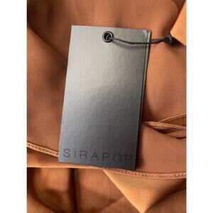 Sirapop Sara Satin Asymmetric Side-Drape Midi Dress in Camel NWTI – Size Small