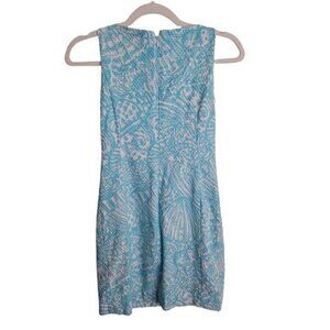 Lilly Pulitzer MacFarlane Shift Dress Aqua Blue Size 0. Pit to pit 16", shoulder to hem 31", Classic Lilly, Crochet Lace Details, Fully Lined, Sleeveless, Round Neck, Hidden Zip Closure, Retail $198. Good Pre-Owned Condition