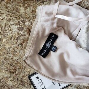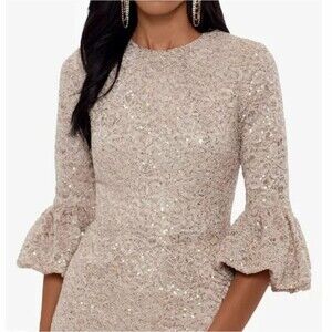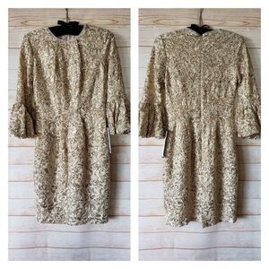 Betsy and Adam Sequined Lace Sheath Dress Bell Sleeves Gold Women's Size 4P