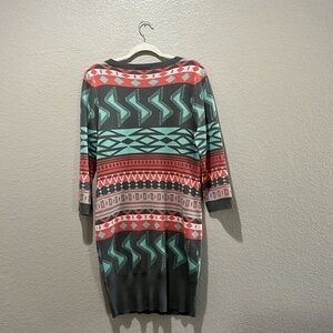 LIV Sweater Dress Size XL Gray Pink Geometric Abstract Print Straight Cut