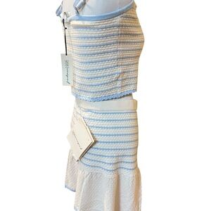Chic two-piece set with blue and white stripes. Includes a crop top and skirt.